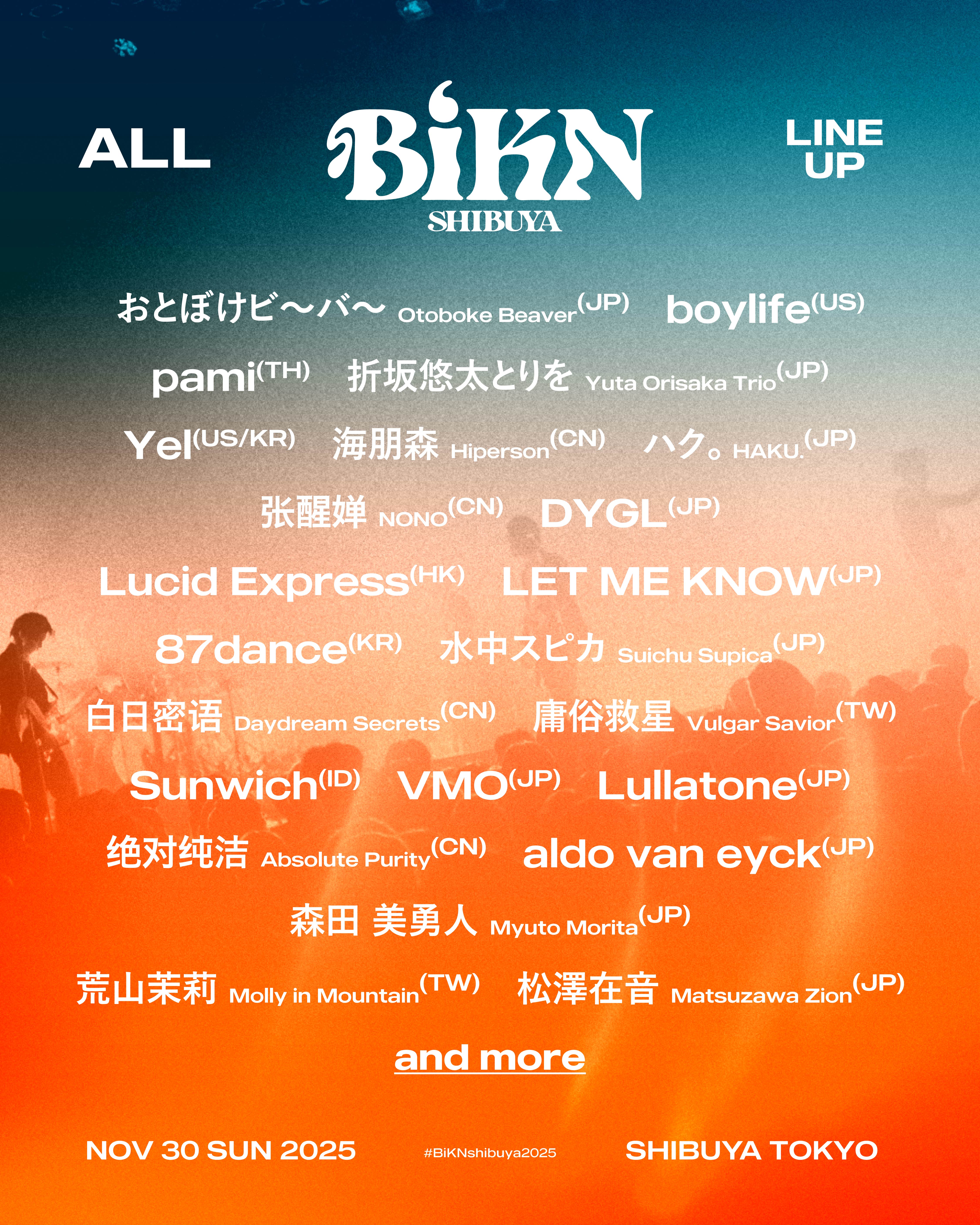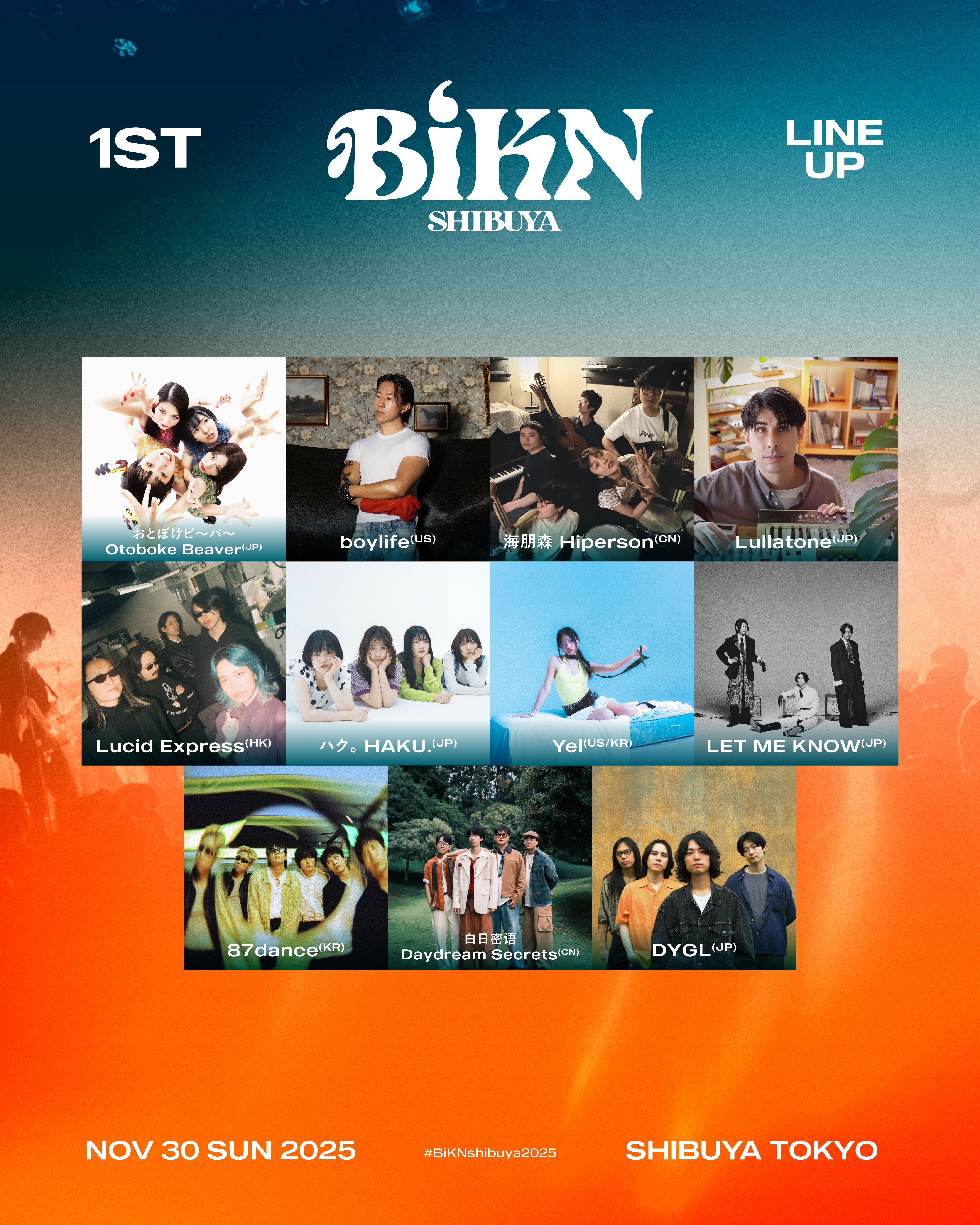 BiKN shibuya, which made a huge impact in its inaugural year by bringing together headliner-level artists from across Asia under the unprecedented concept of “gathering Asia's most talked-about artists in one place,” is back this year!