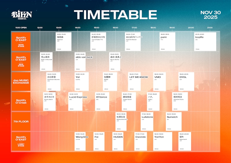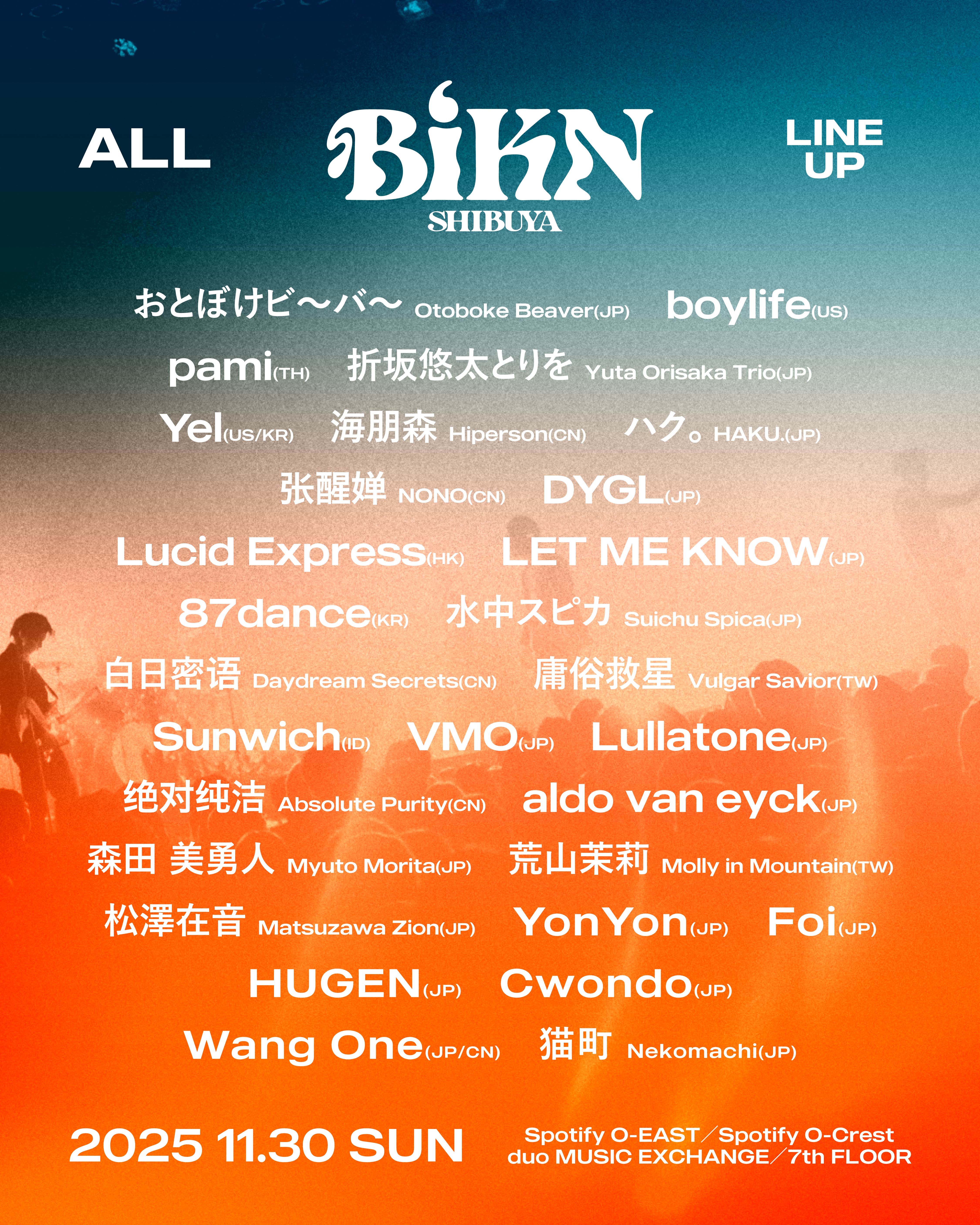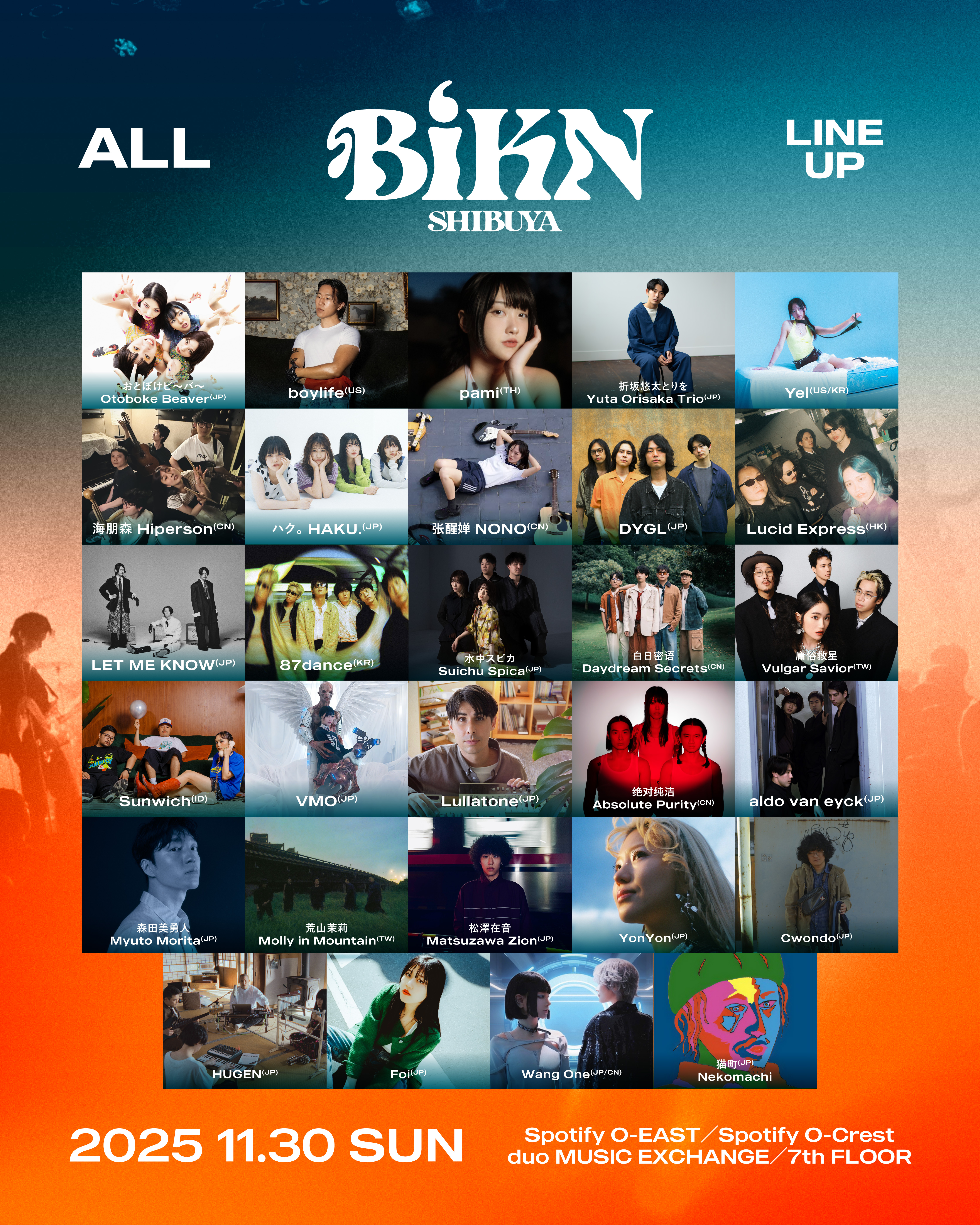 BiKN shibuya, which made a huge impact in its inaugural year by bringing together headliner-level artists from across Asia under the unprecedented concept of “gathering Asia's most talked-about artists in one place,” is back this year!