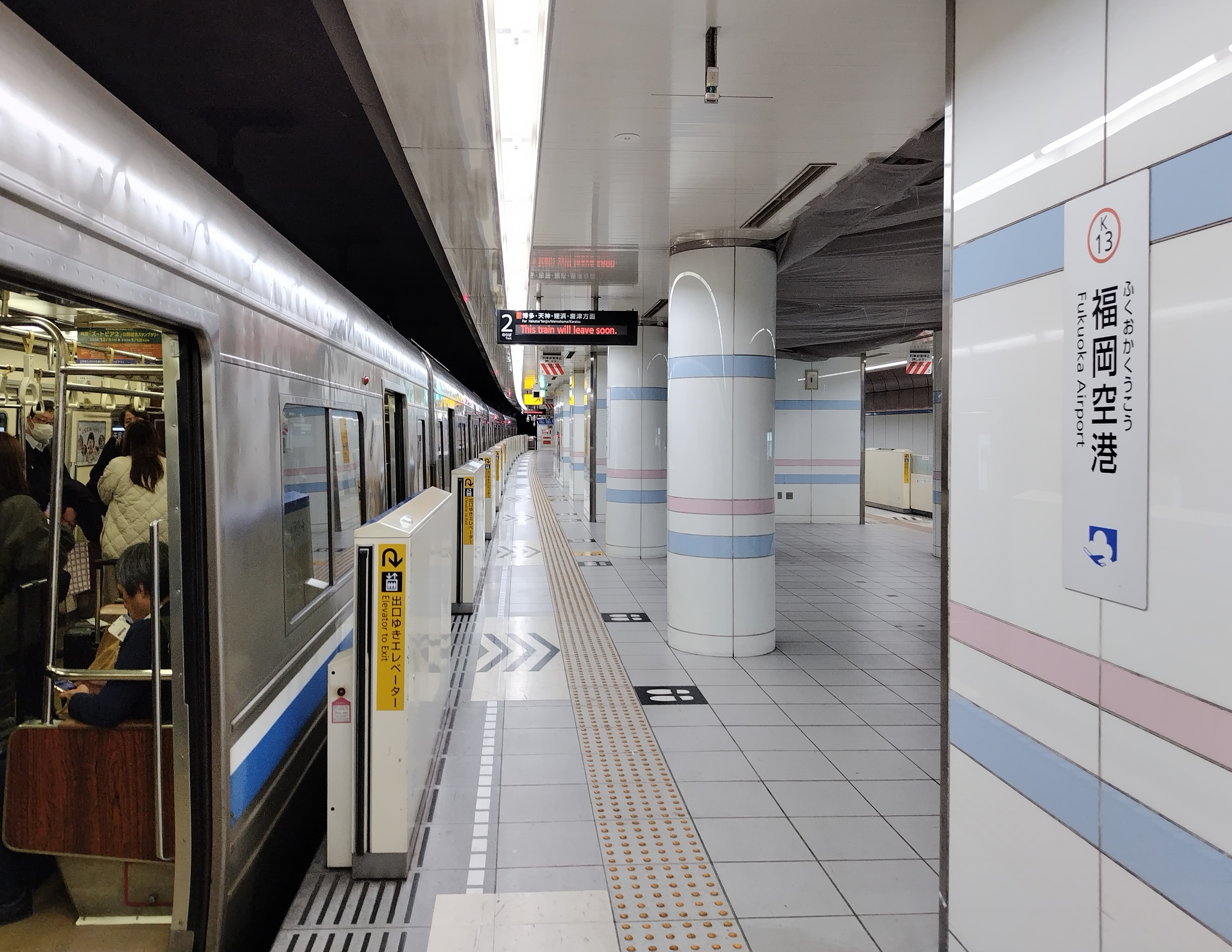 Travel time from Fukuoka Airport Station to Tojinmachi Station is approximately 17 minutes. The fare is 300 yen. Including movement time within the airport and walking from the nearest station to Mizuho PayPay Dome Fukuoka, expect about 30 minutes total. First-time users of Fukuoka Airport should allow extra time in their schedule.