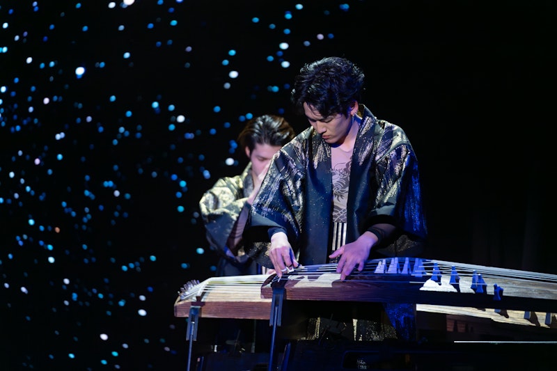 For Fujitaka, Kyoto felt like a place where time flows more slowly and leisurely than other regions. To transfer this sensation to the stage, he focused on creating mysterious depth where you can't tell where sounds are coming from. He incorporated surprising openings in both Hibiki and Yume, using direction that shakes the audience's sense of direction itself.
