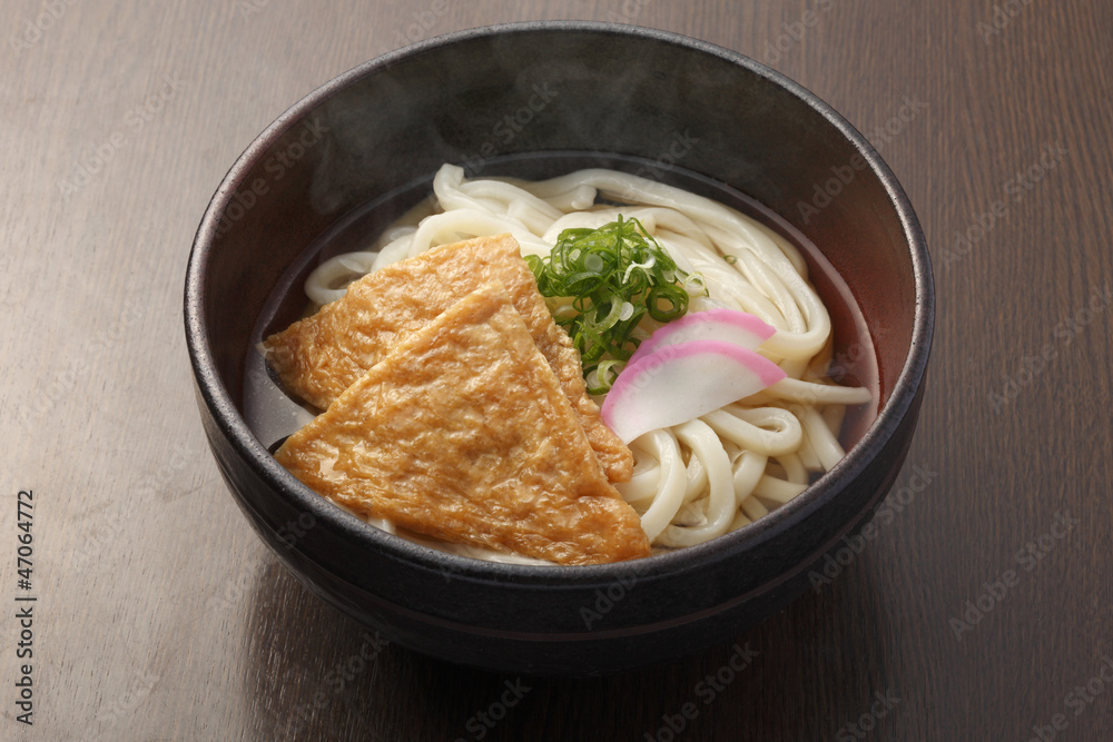 Hot udon is a representative Japanese noodle dish that becomes appealing in winter. Thick, soft noodles are put in broth made from kombu or katsuobushi, with green onions added for simple "kake udon" as the basic form. There are also abundant variations such as "kitsune udon" topped with fried tofu, "tempura udon" with tempura, and "tsukimi udon" with a dropped egg.