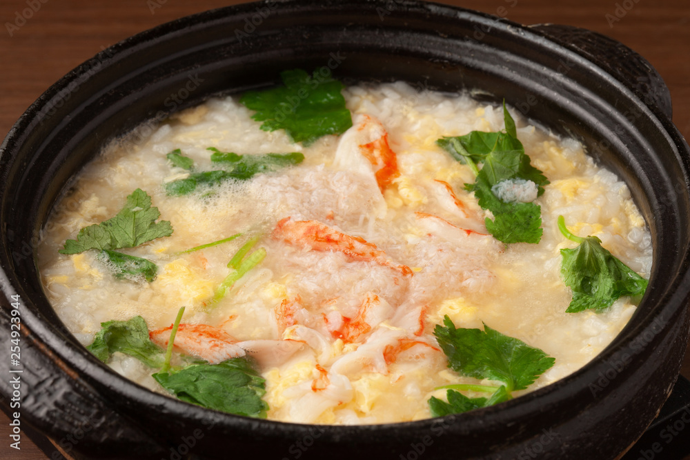 Seasoning is generally soy sauce or miso, but you can enjoy variations depending on ingredients like chicken, seafood, mushrooms, and vegetables. It's easy to eat even when feeling unwell and has been treasured since ancient times as a stomach-friendly dish. It's said to have been eaten since the Heian period and continues today in forms like "nanakusa-gayu" (seven-herb rice porridge) and "miso-gayu" (miso rice porridge).
