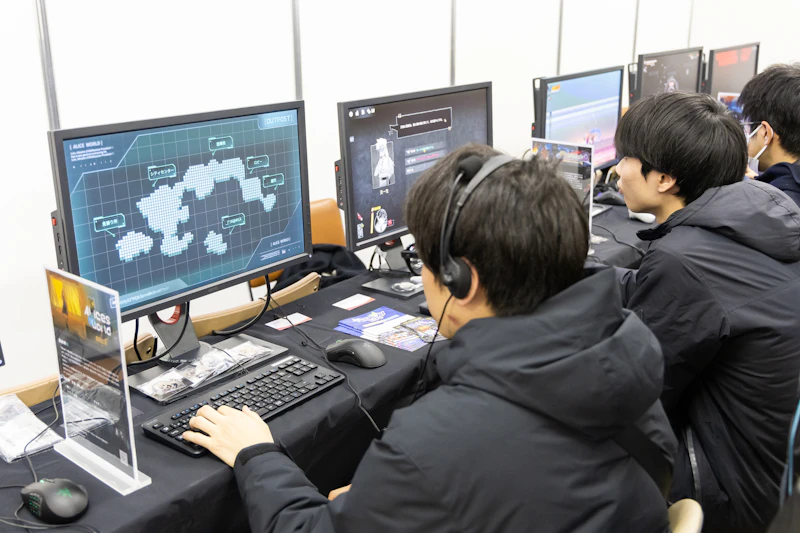 예를 들어 '잡음계 소년 소녀', 'DelveSurvivors', '나락의 키친'과 같은 개성 넘치는 타이틀이 나열됩니다. 이벤트 참가자는 최신작이나 개발 중인 작품에 직접 접하며 크리에이터의 열정을 느끼면서 체험할 수 있습니다.