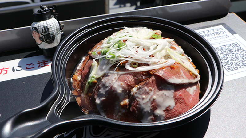 <MARINE KITCHEN FIRST BASE SIDE>에서 판매하고 있는 마린스의 에이스 좌완 오지마 가즈야 투수 콜라보 메뉴 '오지마의 로스트비프 덮밥'은 2년 연속 10,000식 이상을 판매한 대인기 메뉴입니다. 상질의 소 넓적다리살을 사용한 로스트비프를 플레이크 상태로 만든 간장으로 드십니다.