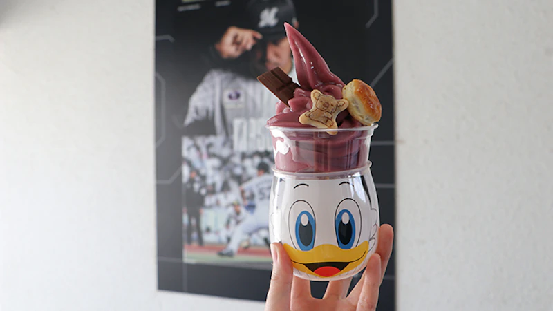 귀여운 외관의 디저트도 추천합니다. <마린 식당><M&K>에서 판매하는 '마군 선데'는 마린스의 구단 마스코트 마군의 일러스트가 그려진 컵에 들어있어서 컵은 기념품으로 가져갈 수 있습니다. 평상시에는 바닐라맛 소프트아이스크림에 딸기 또는 망고 과일소스, '롯데'의 과자인 '코알라 마치', '파이의 실', '가나 밀크'가 토핑되어 있지만, 올해 'BLACK SUMMER WEEK' 개최 중에는 거봉맛 셔벗이 제공되는 등 기간한정 플레이버가 등장하기도 합니다.