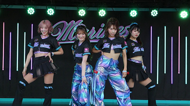 또한 마린스의 구단 공식 치어퍼포머 'M☆Splash!!'의 퍼포먼스도 필견입니다. 경기 전에는 구장 외곽의 '볼파크 스테이지'에서 날카로운 댄스를 선보입니다. 플레이볼 직전 그라운드에서도 대형 깃발과 카메라워크를 활용한 멋진 퍼포먼스로 스탠드를 달굽니다.